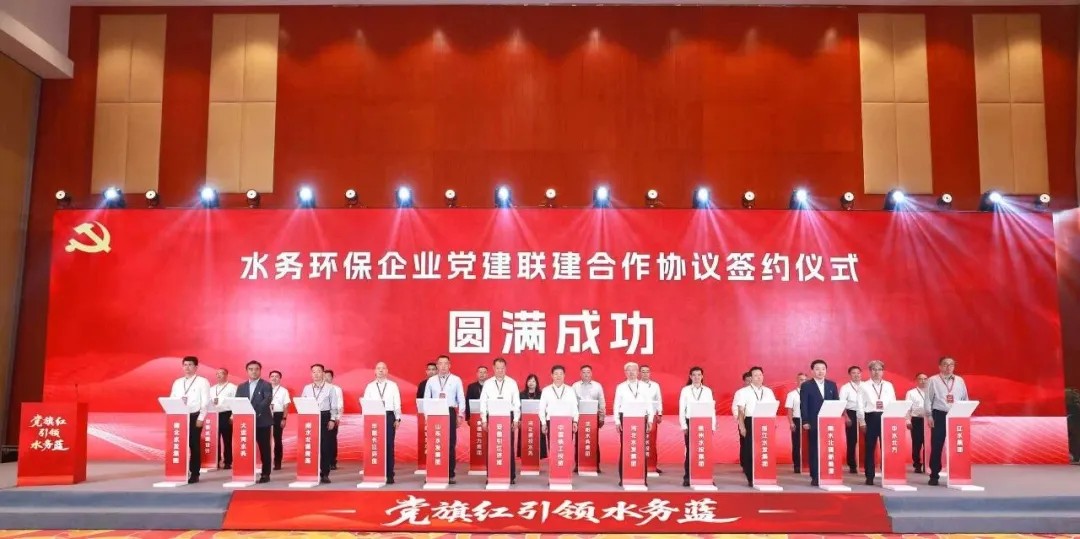 陈光建代表中铁六院集团,与26家相关单位共同签署了《党建联建合作协议书》,通过党建联建搭建常态化交流平台,深化各方在水务环保领域的战略协同、资源共享与创新合作,共同构筑开放共赢的产业生态。