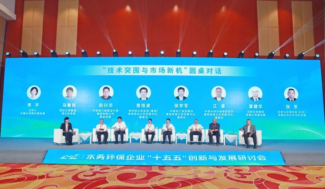 集团公司副总经理赵兴华作为七位特邀嘉宾之一出席 “技术突围与市场新机”圆桌对话环节,并结合中铁六院的转型实践,分享了企业从传统铁路设计院成功切入水务环保新赛道的最新成果与系统解决方案能力。