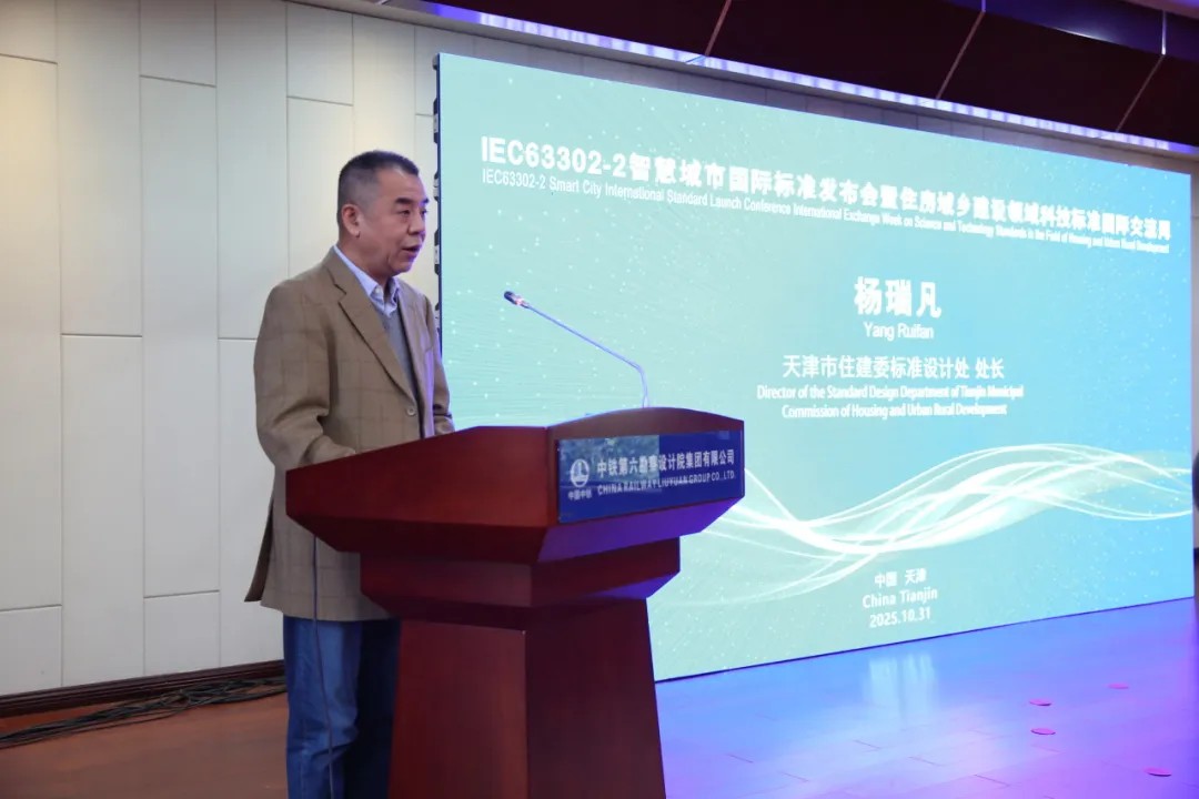 2025年10月31日,IEC63302-2智慧城市国际标准发布会暨住房城乡建设领域科技标准国际交流周在津隆重召开。国家住房和城乡建设部标准定额司、市住房和城乡建设委员会、中国中铁、国际电工委员会(IEC)智慧城市系统委员会领导及行业专家学者齐聚一堂,共同见证这一全球智慧城市标准化领域的重要里程碑。