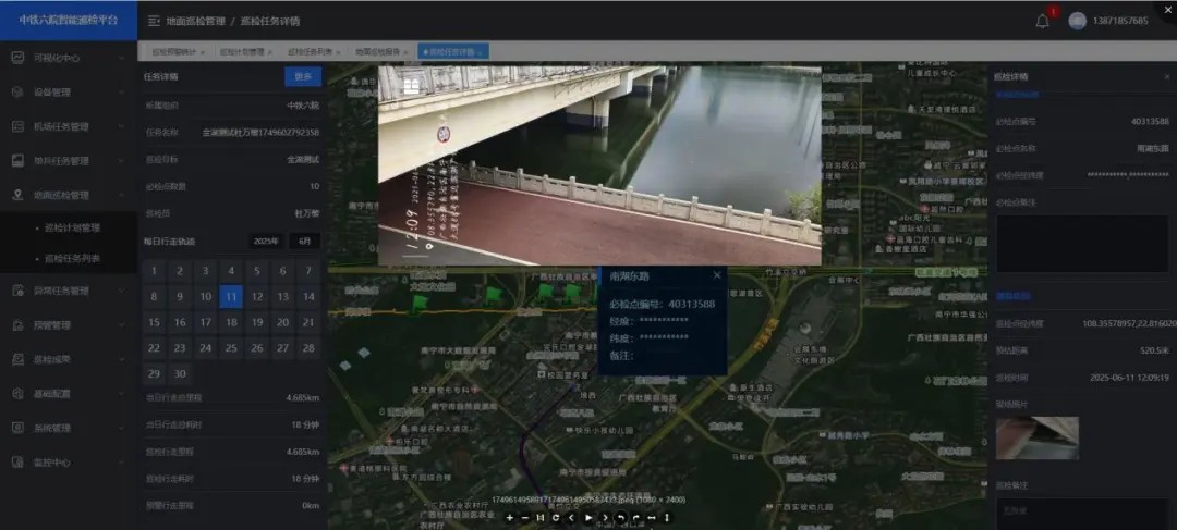 智能巡检平台作为整个巡检体系的 “中枢大脑”,依托 “空 - 地 - 云” 协同架构,实现全流程信息化管理,彻底打通数据流转与业务协同的堵点。指挥中心大屏以数字孪生地图为基底,实时呈现无人机航迹、预警动态与处置进展,管理人员可通过大屏 “一键穿透” 查看任意点位的巡检影像、设备参数与历史记录;平台具备 “自动派单 - 进度跟踪 - 结果归档” 全链条功能 ——AI 识别到违规施工、围挡侵占等隐患后,系统自动生成带定位的处置任务,推送至就近巡检人员的手机 APP;处置完成后,人员上传现场照片与整改报告,平台自动关联原始预警数据,形成可追溯的闭环档案;系统可自动生成包含巡检里程、异常点位、处置率等核心指标的巡检日报,无需人工手动整理;若无人机或机场设备出现故障,平台立即触发分级告警 ——1 小时内售后团队响应故障排查,3 个工作日内备用设备到位,确保巡检业务持续稳定开展,全年设备可用率保持在 99% 以上。